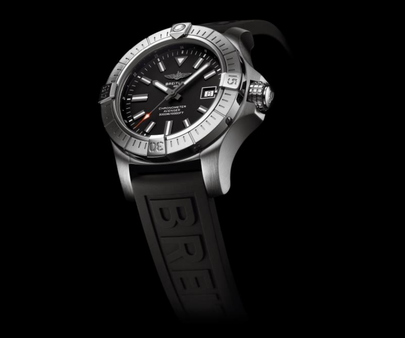 Driving the Breitling Avenger Automatic 45 Seawolf watch is the familiar Breitling 17 automatic winding calibre, the very same which fuels the other time-and-date models in the Avenger collection. We’re promised to 26 jewels, a frequency of 28,800 vibrations per hour, a 38 hour power reserve and, as with every Breitling watch, the in-house movement is COSC certified for its impressive levels of accuracy.