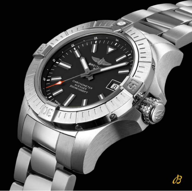 Those already familiar with the Breitling Avenger watch will be aware of its impressive reputation in both the cockpit and underwater. The new Breitling Avenger Automatic 45 Seawolf UK Exclusive watch is no different, offering an extremely robust and shock resistant architecture worthy of the wrists of any adventurer. It’s stainless steel case measures in at an imposing 45mm wide and 18.3mm high. Its arresting size feels reliably solid on the wrist and is certainly excused when you learn that we’re guaranteed a whopping 3,000 metre water resistance.