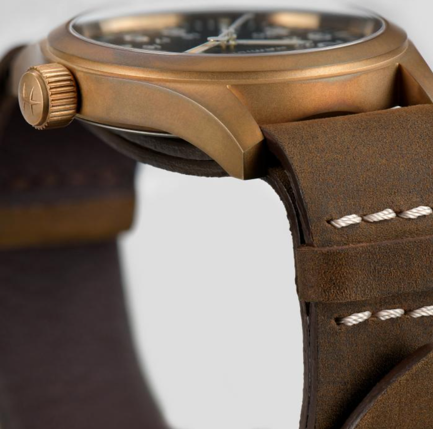 There’s no denying bronze has become somewhat of an unstoppable trend in the luxury watch world over the past couple of years and its unique patina-developing properties shows no sign of decreasing in popularity. For us, it is the perfect case material for vintage-inspired watches like the Hamilton Khaki Field Mechanical Bronze, which is engineered almost entirely from bronze, other than the case back, using CuSn8 alloy (92% bronze and 8% tin). The 38mm bronze case offers a variety of unique features including a warm, pre-worn colour and a textured patina that will naturally develop overtime. As such, each Hamilton Khaki Field Mechanical Bronze watch will look entirely different to the rest and tells something of a story of its wearer and it’s time on the wrist – just like that of real military field watches.