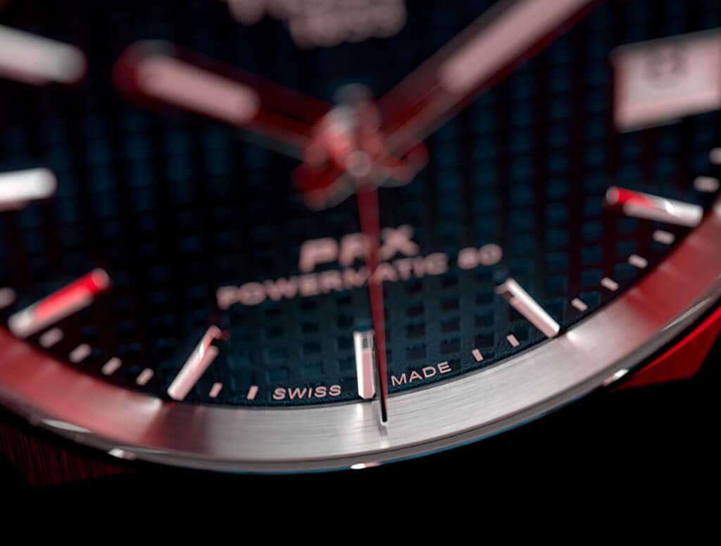 For now, there are four dial colours available on the Tissot PRX 35mm Powermatic 80 watch – but we have no doubt more dial designs will be available soon. The colours include classic black, ocean blue, deep forest green and a white mother of pearl. Each display neglects the traditional sunray-brushed surface of their 35mm quartz counterparts and utilises the waffle-like pattern seen only on PRX Automatic watches. Placed on top, the dials present the usual striped baton hands, applied indexes and framed date window at 3 o’clock. The hour markers and hour and minute hands feature Superluminova inserts.