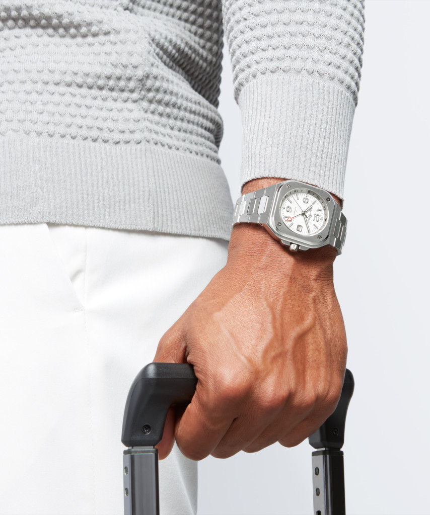“The GMT is a common complication in watchmaking. It is one of the most useful functions that provide real practical information. It allows the display of the time of two time zones. In this sense, it fulfils the needs of air travellers”, recalls Bruno Belamich, Artistic Director of Bell & Ross. “It gives them the advantage of having the time of their places of departure and arrival simultaneously.”