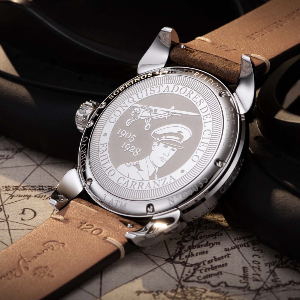 Emilio Carranza is a revered Mexican aviator who undertook numerous successful missions throughout his career. One of his most remarkable feats was a record-breaking flight from Mexico to New York City in 1928. Before that, he also took part in the prestigious “National Air Race” held in Mexico City, where he emerged victorious in the “Cabin Planes” category. This significant triumph brought him widespread recognition in the country and subsequently led to his appointment as the chief pilot of the Mexican military’s aviation division. The new Cuervo y Sobrinos Vuelo Emilio Carranza collection gives tribute to the courageous aviator and his talents in the air, paying homage with legible black dials adorned with a plane illustration at 6 o’clock and a screw down case back engraved with a portrait of the legendary Mexican pilot.