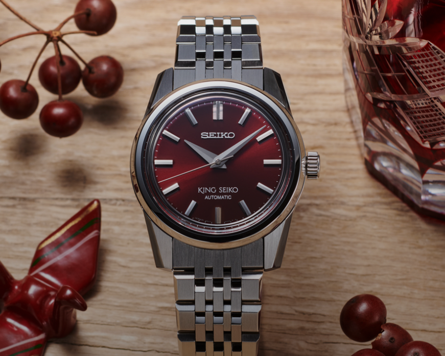 Completing each King Seiko watch is a choice of two straps. The first is a retro-esque fine-link stainless steel bracelet with faceted links, tapering from case to folding buckle. The links are also brushed with polished bevels. Alternatively, you can order the King Seiko watches on a vintage-inspired leather strap in a range of colours. The leather straps close by stainless steel pin buckles engraved with the King Seiko emblem.