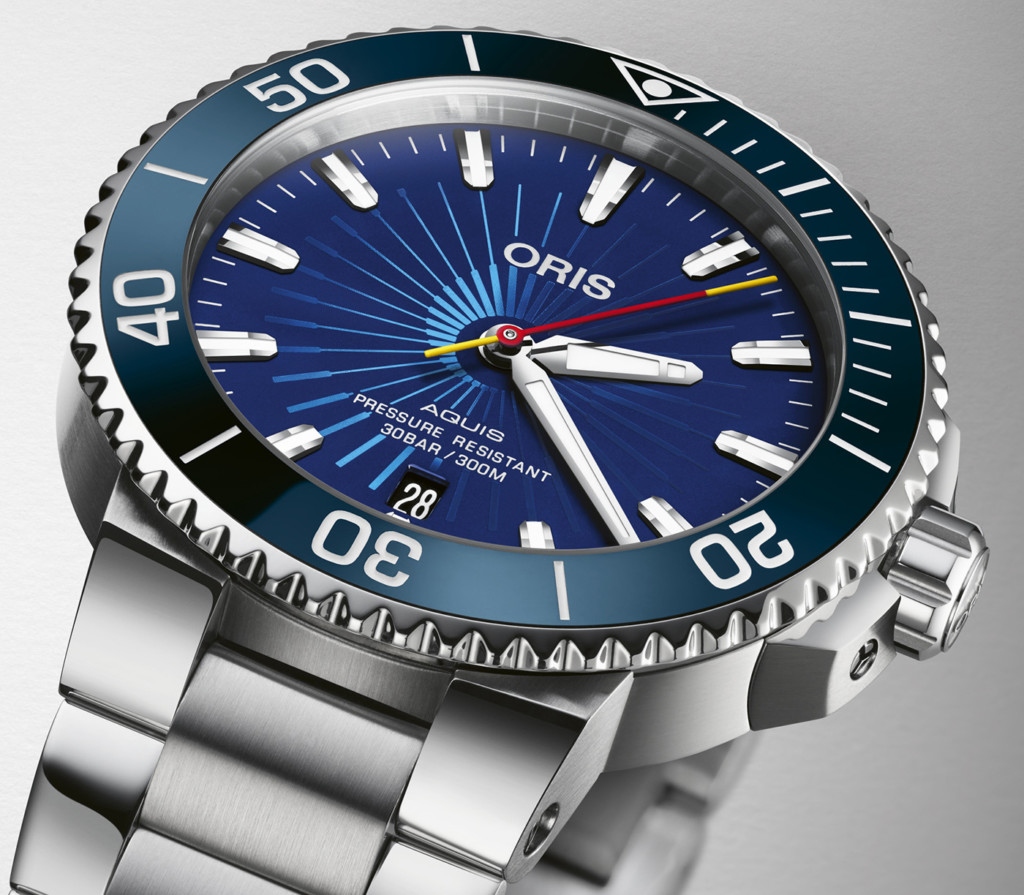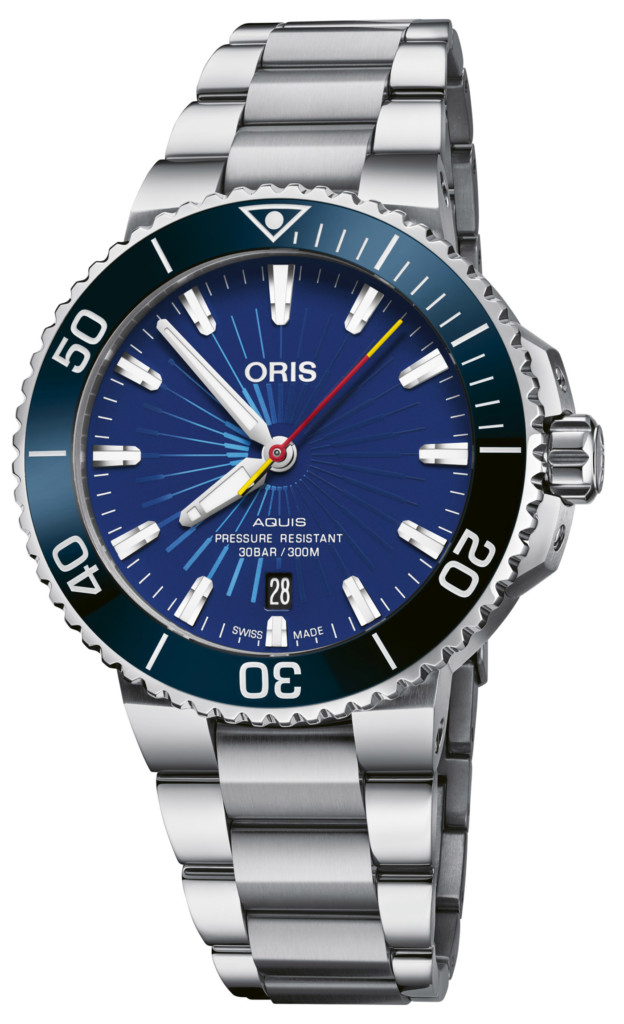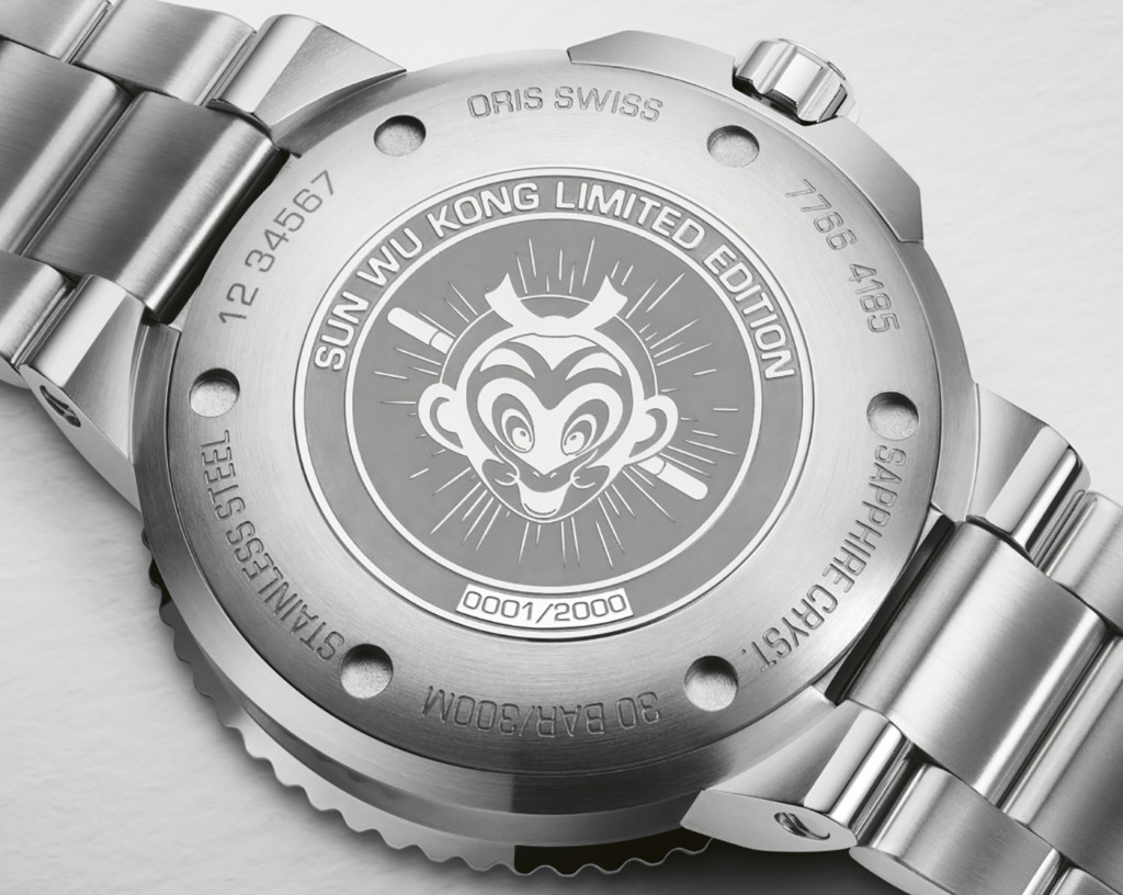 Turn the Oris Aquis Sun Wukong Limited Edition watch over and further decoration appeals to fans of the Monkey King with an image of the icon and his staff beautifully engraved on the case back. The case back is also decorated with its limited edition status of 2,000 pieces. For the case, Oris opts for classic stainless steel measuring in at 41.5mm with the familiar Aquis down-turned lugs and 300 metre water resistant rating. The housing also delivers a unidirectional rotating bezel finished with a handsome ocean blue ceramic bezel, another colour paying homage to the watch’s inspiration. The Oris Aquis Sun Wukong watch is completed with a screw down crown, crown protectors and a matching stainless steel three-row link bracelet.
